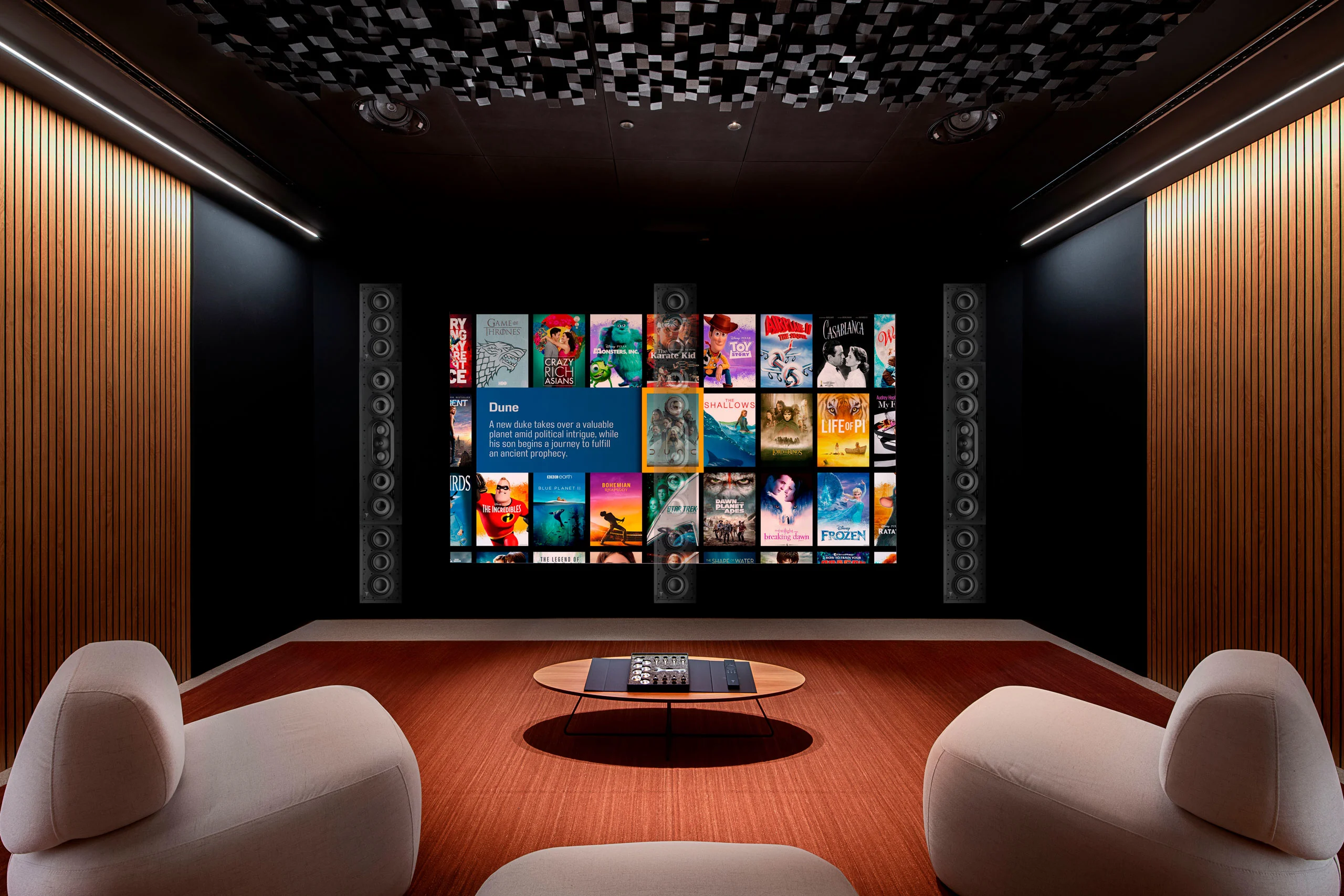 O ambiente proporciona uma imersão em soluções para projetos personalizados, mostrando versatilidade, integração arquitetônica e alta performance sonora.